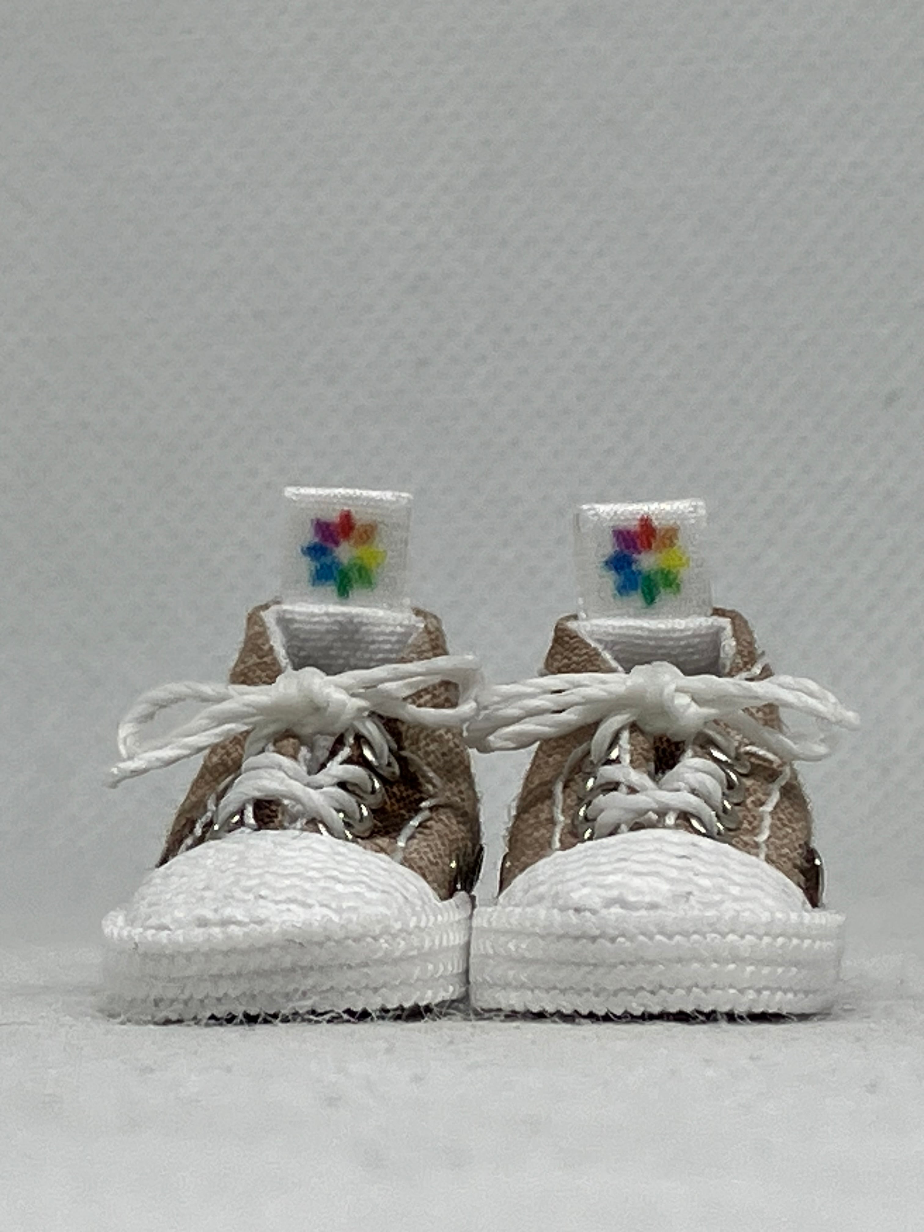 このスニーカーは、オビツ11、ピコドー9、ピコドー10、YMYドール、ミディブライス、リカちゃん(元のボディ)等の足にピッタリのサイズです。