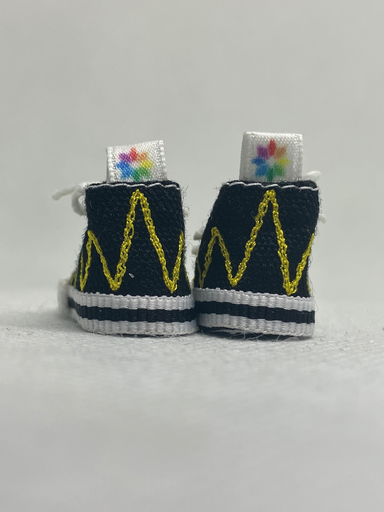 【オビツ11&ピコドー&ミディブライス用】刺しゅうハイカット ライトニングスニーカー(黄)