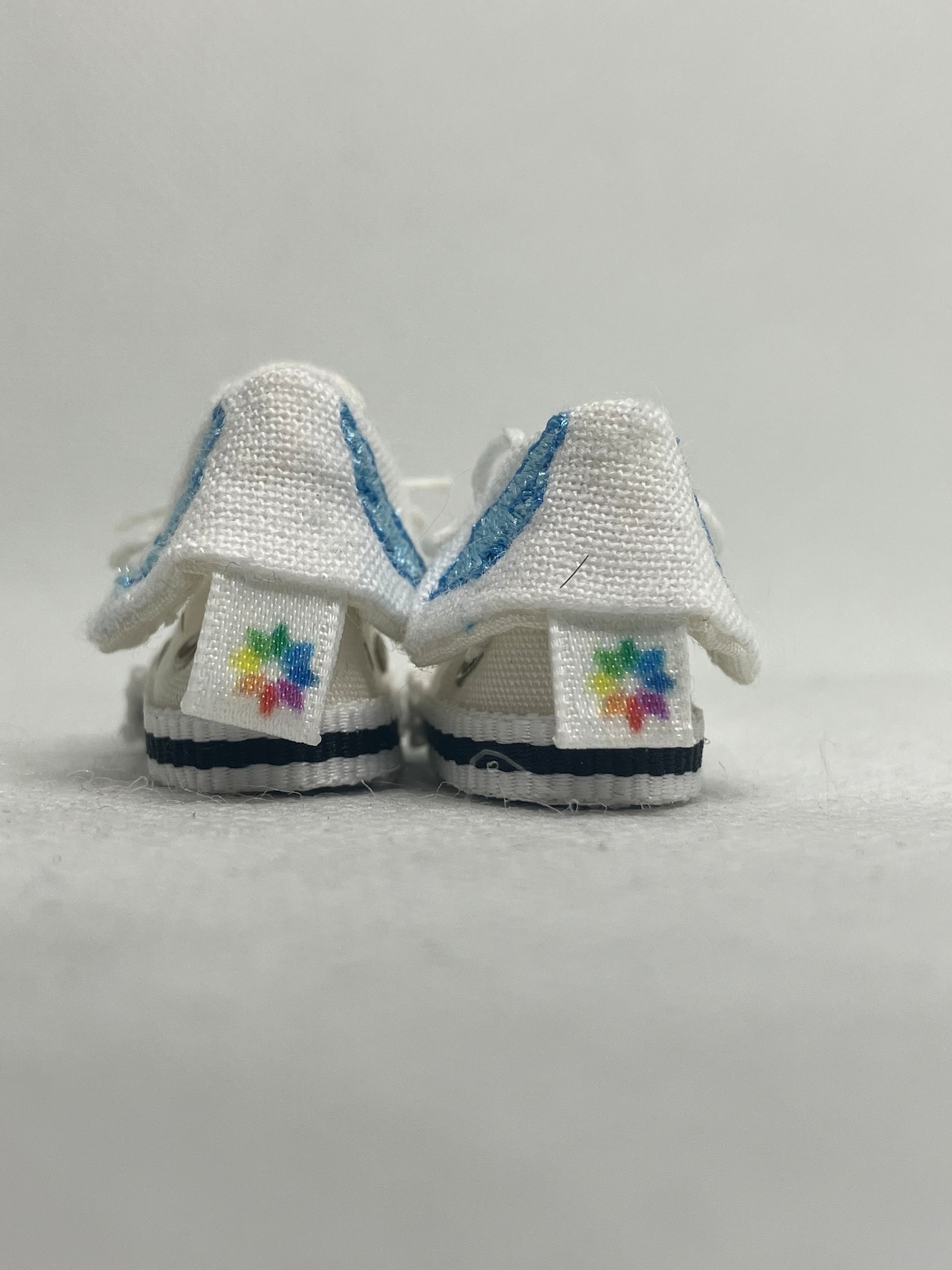 こちらのスニーカーは、他の折り返しスニーカーのシリーズとは異なり、刺しゅう領域を確保するために靴紐を通す下4つより上部のハトメは付けていません。