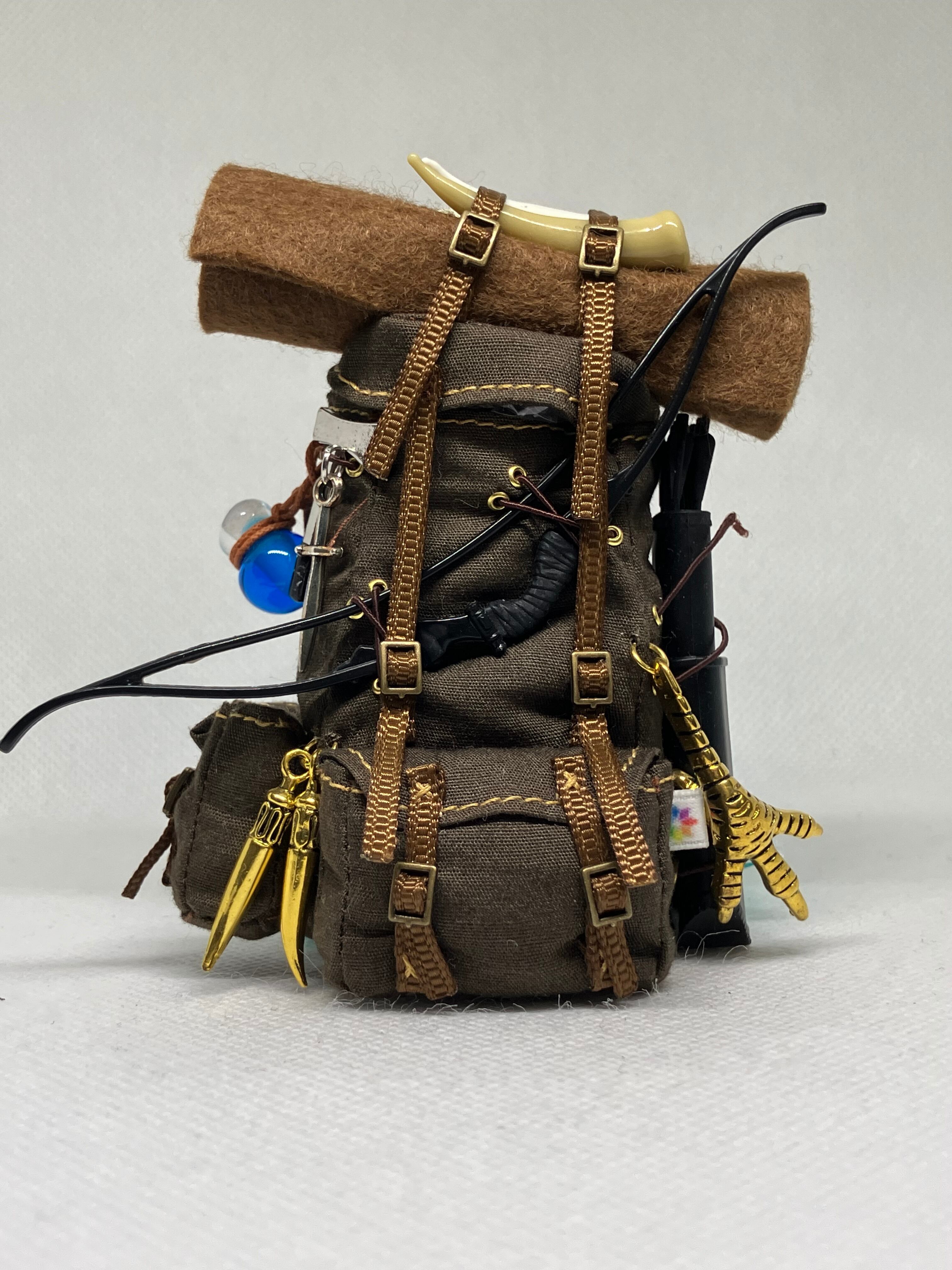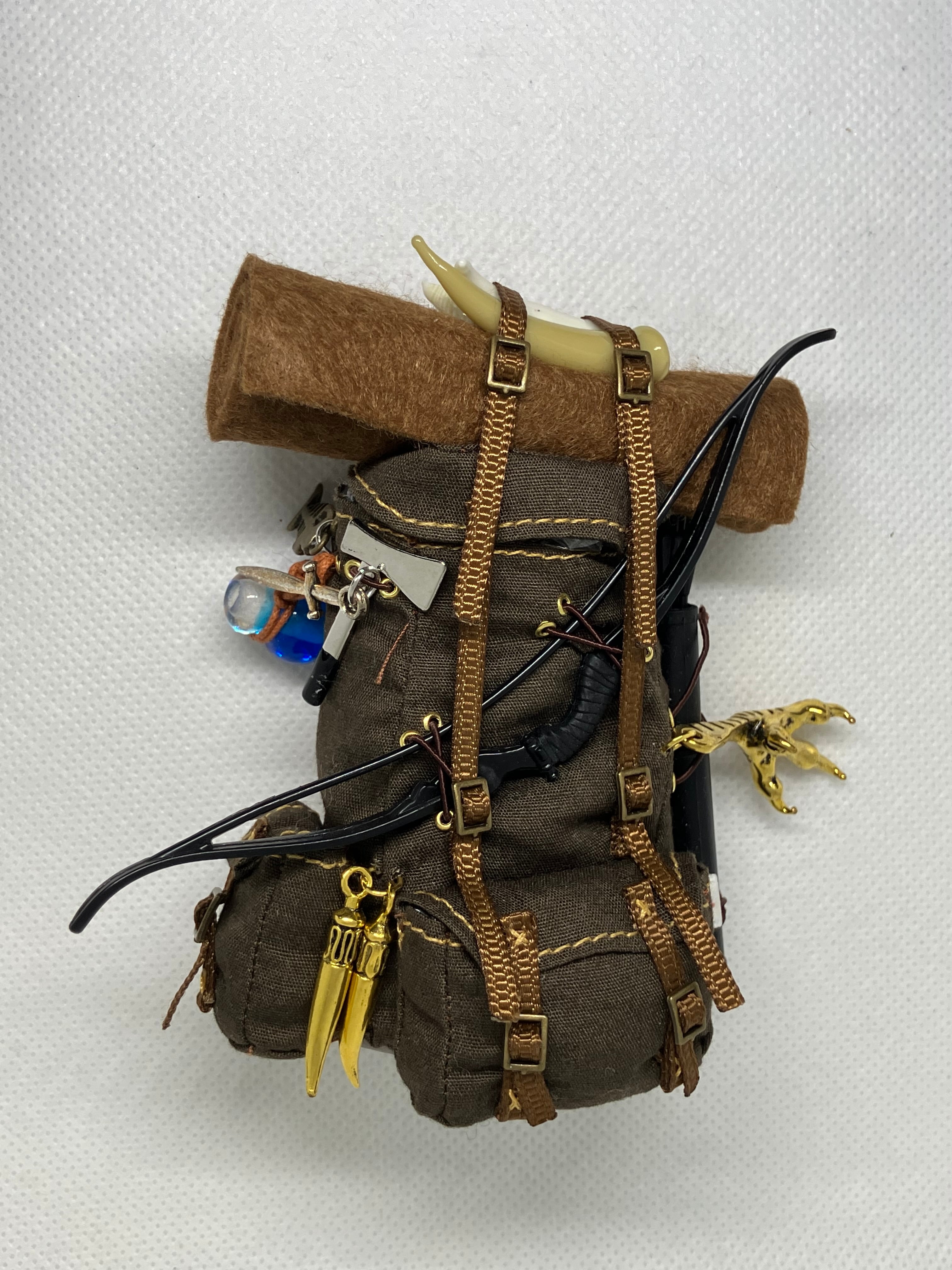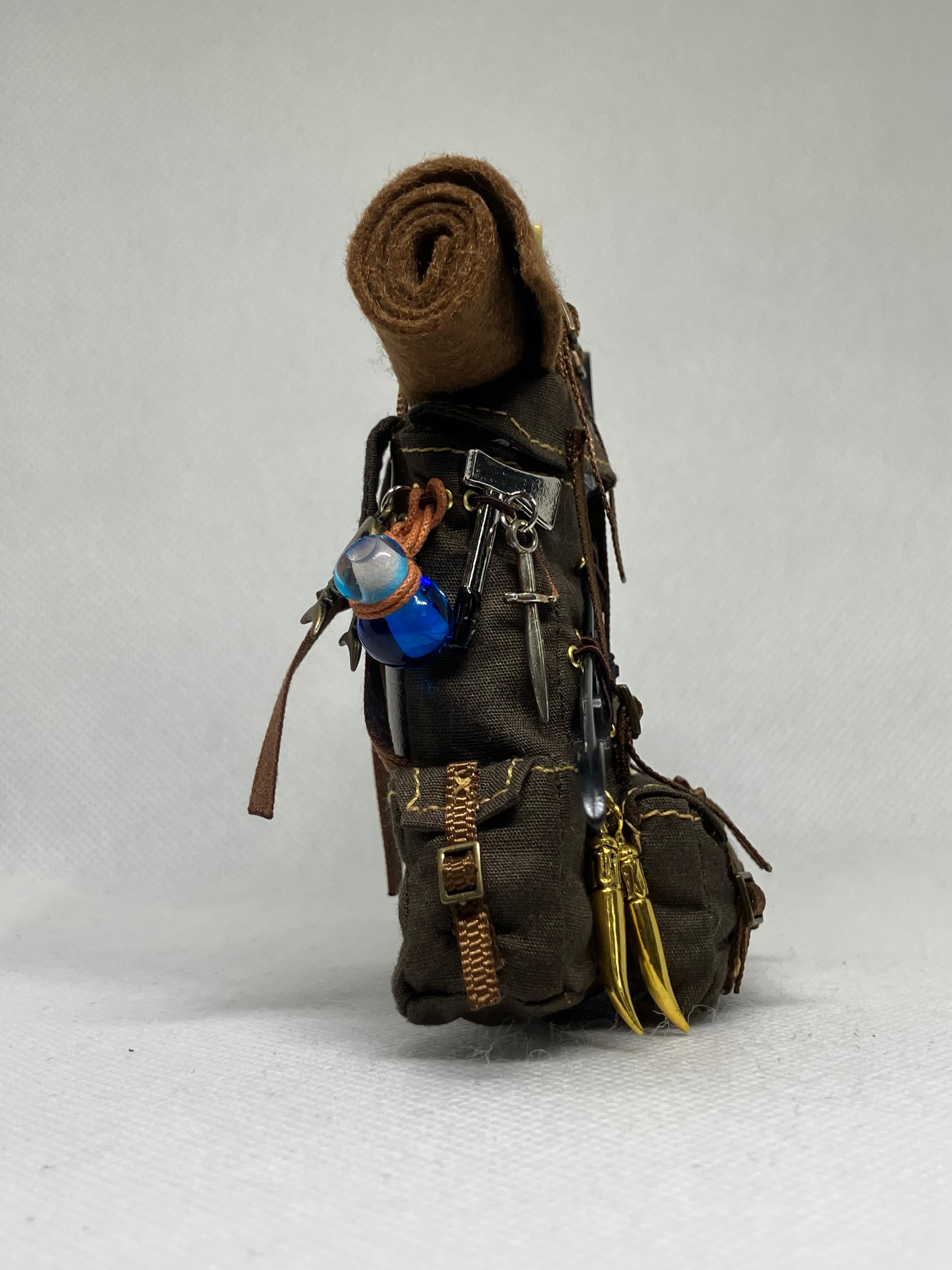 ドールが実際に背負うことができるファンタジー仕様の古風なリュックです。